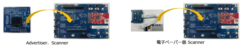 ※DKE社製電子ペーパーを利用するために、Scanner側のCYW20829評価ボードに改造が必要となります。