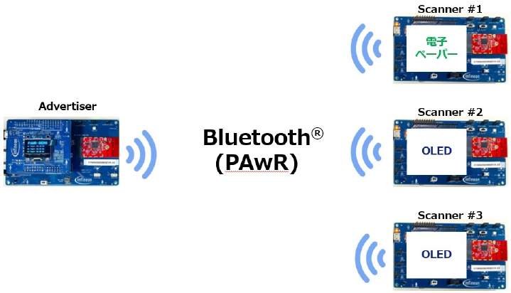 「1対多」の双方向通信を実現 Bluetooth® LE PAwR : Infineon評価ボードを使用したデモ