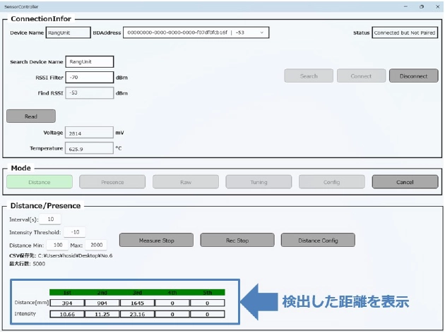- 評価SW:PC上で距離表示を行う評価用アプリを提供