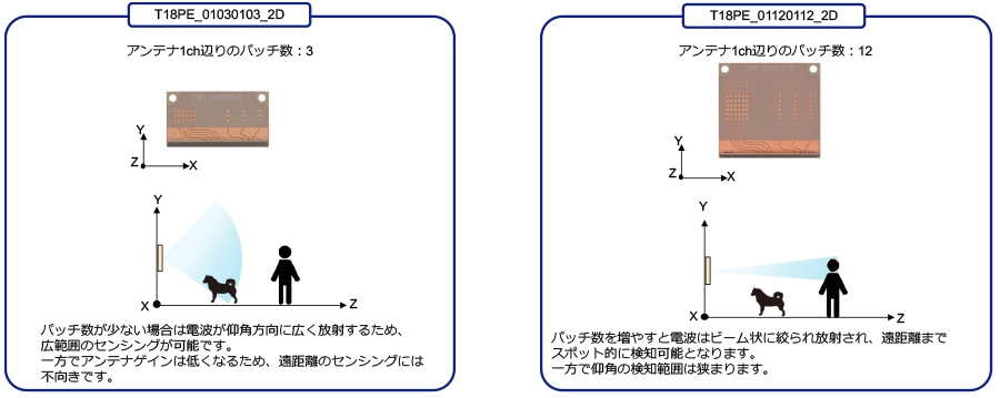 検知できる最大角度についても分解能と同様に、アンテナ設計によりそのスペックが左右されます。
